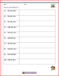 The greatest common factor (also known as gcf) is the largest number that divides evenly into each number in a given set of numbers lcm and gcf worksheet. Lcm least common multiple math worksheets printables pdf for kids lcm worksheets for kids .